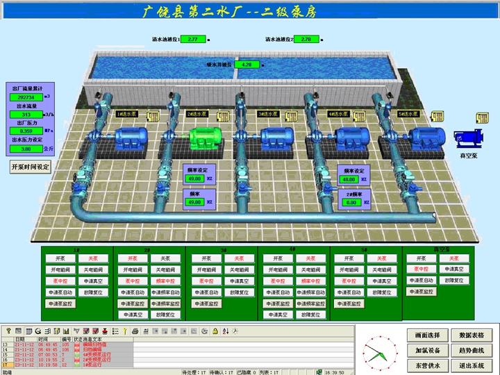工程規(guī)模:設(shè)計(jì)規(guī)模3.5萬(wàn)噸/日,新建水源井10座,改建原一廠(chǎng)水源井9座,均采用在線(xiàn)遠(yuǎn)程監(jiān)測(cè)、控制。水廠(chǎng)采用地下水-清水池-消毒-二級(jí)泵房的處理工藝。綜合運(yùn)用GIS技術(shù)、CAD技術(shù)、數(shù)據(jù)庫(kù)技術(shù)、網(wǎng)絡(luò)技術(shù)、管網(wǎng)綜合調(diào)度系統(tǒng)(SCADA),建設(shè)了廣饒縣GIS給水管網(wǎng)地理信息系統(tǒng),實(shí)現(xiàn)城市給水管網(wǎng)數(shù)字化全覆蓋,實(shí)現(xiàn)了城市給水全生產(chǎn)過(guò)程的信息化管理。